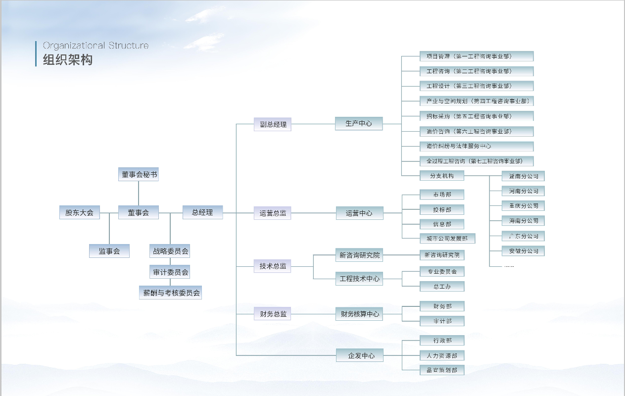 公司下設(shè)工程咨詢事業(yè)部、招標代理事業(yè)部、工程造價咨詢事業(yè)部、規(guī)劃設(shè)計事業(yè)部等機構(gòu)...