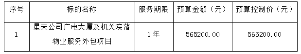 1、采購項目名稱:星天公司廣電大廈及機關院落物業(yè)服務外包項目