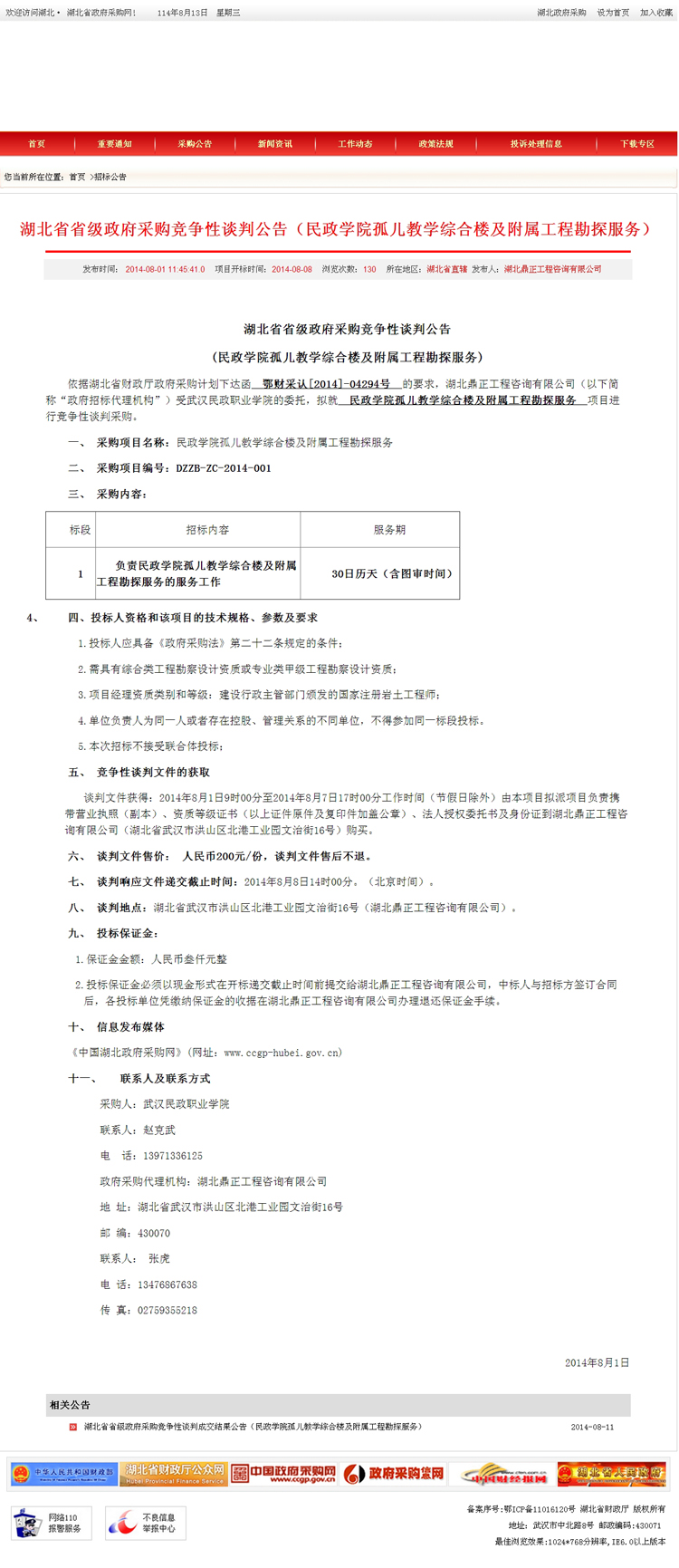 民政學(xué)院孤兒教學(xué)綜合樓及附屬工程勘探服務(wù)