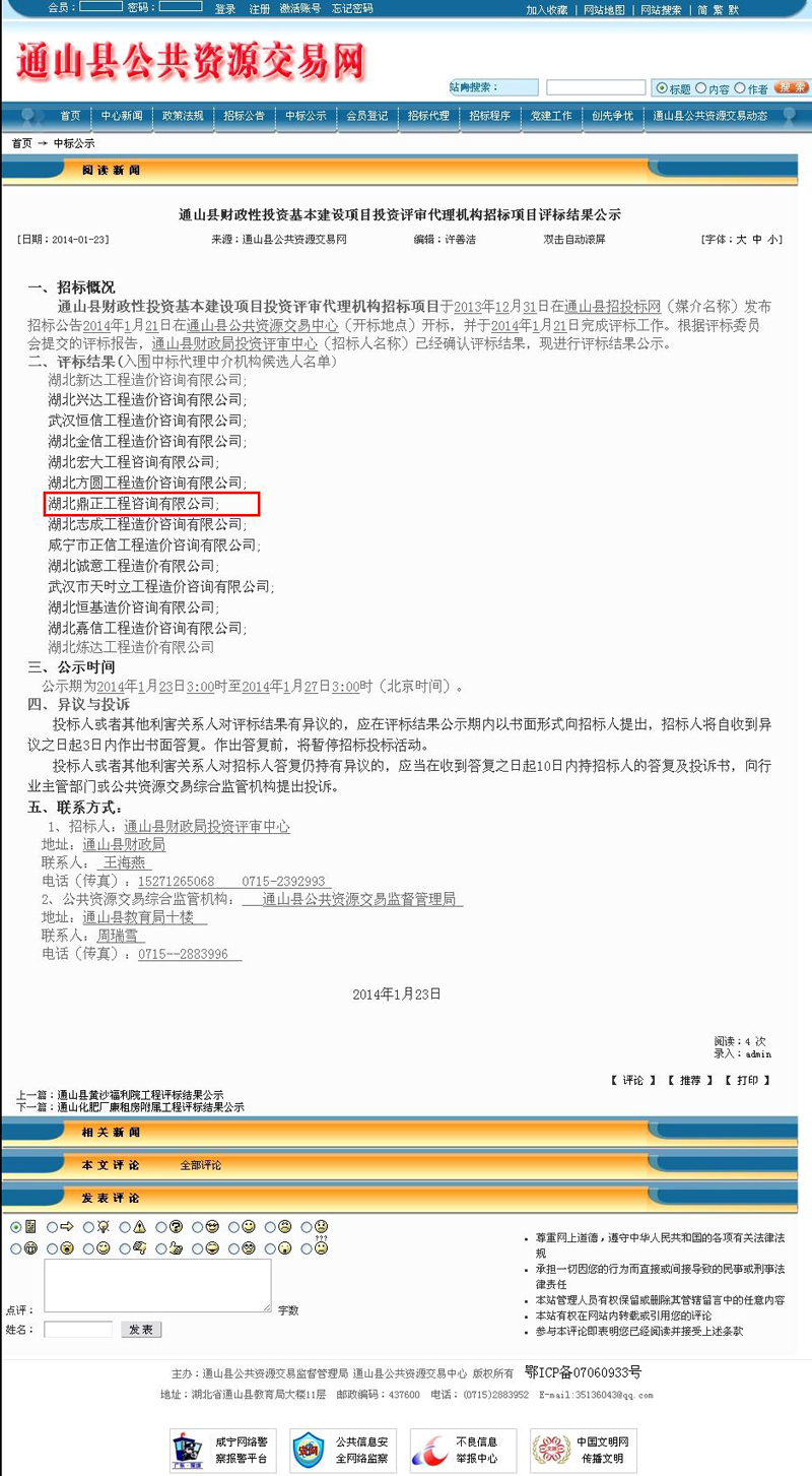我公司入圍通山縣財(cái)政性投資基本建設(shè)項(xiàng)目投資評(píng)審代理機(jī)構(gòu)候選名單