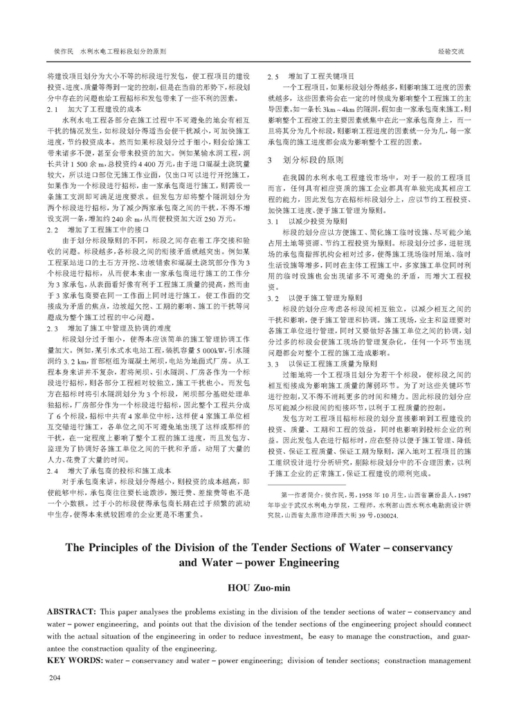 水利水電工程標段劃分的原則