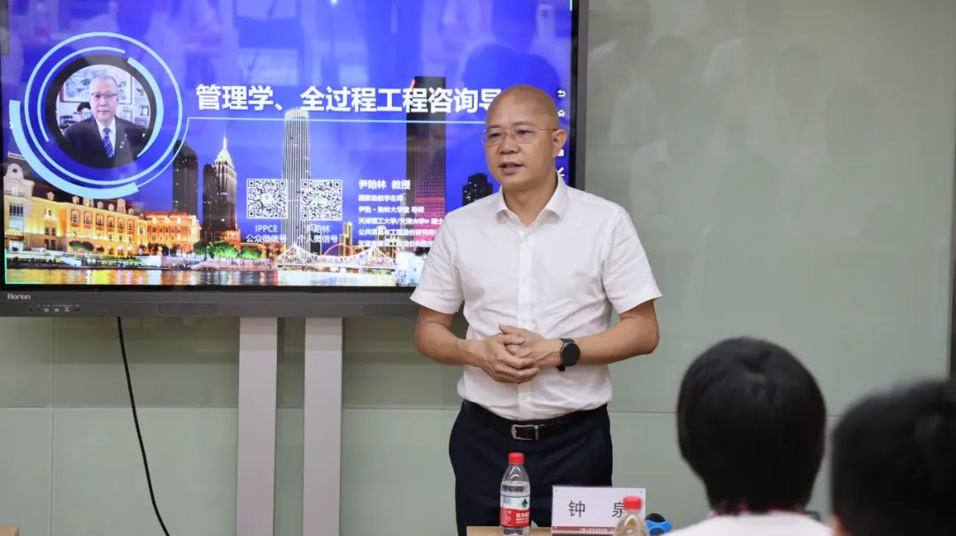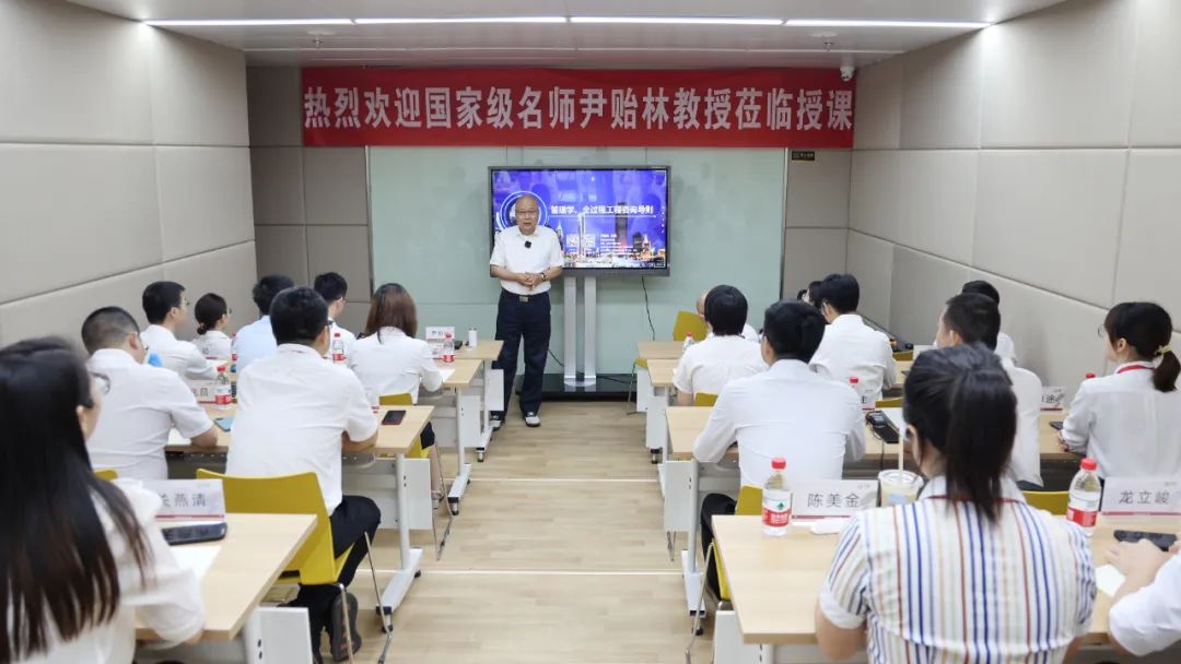 鐘泉董事長為尹教授到來授課表示熱烈的歡迎與崇高的敬意。鐘泉董事長從1997年開始就跟隨尹教授學(xué)習(xí),在作為造價工程師以至成為一家工程咨詢企業(yè)領(lǐng)導(dǎo)者的職業(yè)道路上,一直都深受尹教授思想影響。他是尹教授多年來在全國各地講課的忠實聽眾,深為尹教授的高深思想與授課魅力折服,他表示,能夠邀請尹教授為工程咨詢行業(yè)的“未來之星”授課,是一件代表著行業(yè)發(fā)展“薪火相傳”的大事情。