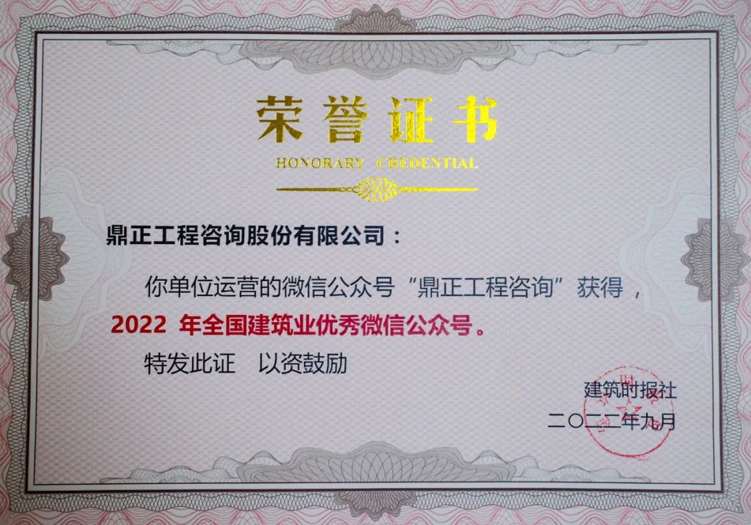 9月25-26日,由建筑時(shí)報(bào)社主辦的2022建筑業(yè)微信公眾號運(yùn)維經(jīng)驗(yàn)交流研討會暨全國建筑業(yè)優(yōu)秀公眾號頒獎(jiǎng)典禮在武漢舉辦。鼎正官方微信公眾號“鼎正工程咨詢”上榜全國建筑業(yè)優(yōu)秀微信公眾號榜單,榮獲2022年全國建筑業(yè)優(yōu)秀微信公眾號。