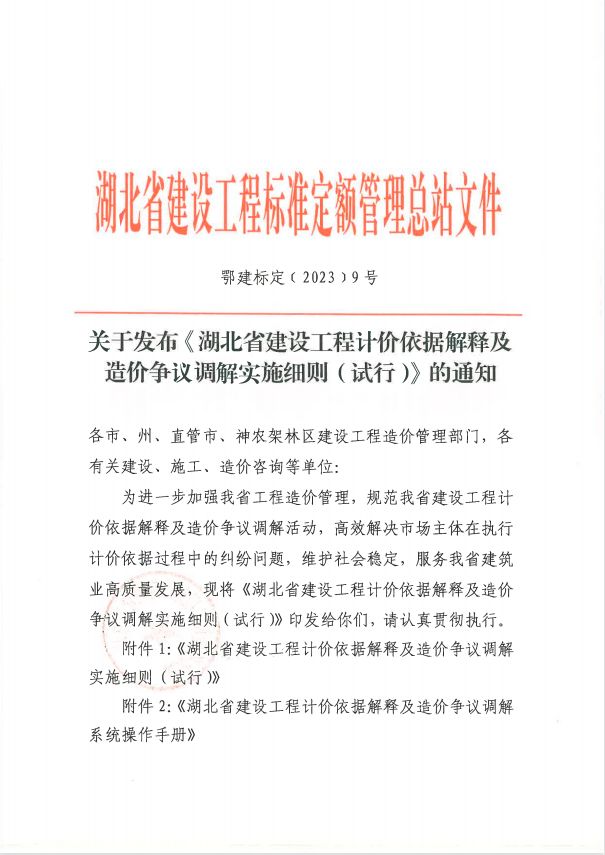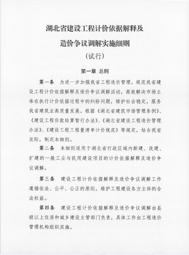 《湖北省建設工程計價依據(jù)解釋及造價爭議調(diào)解實施細則(試行)》