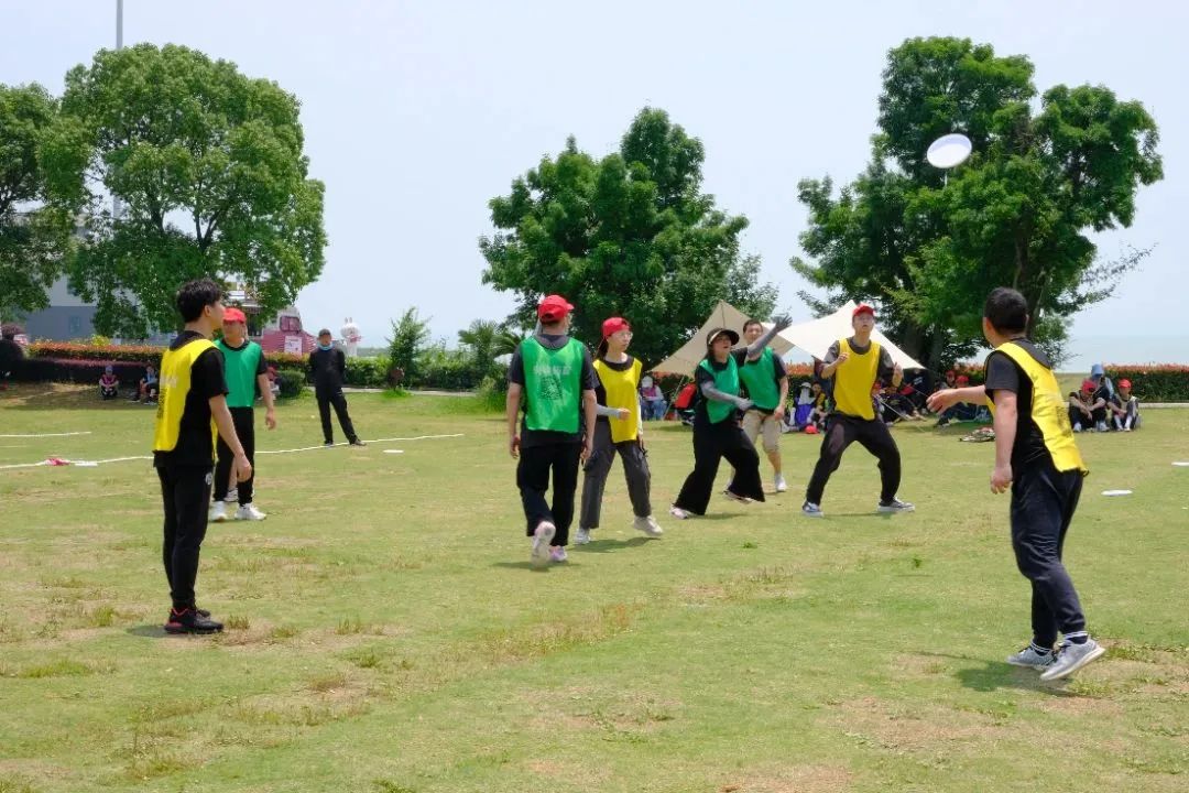 在教練的帶領(lǐng)下,大家來到戶外場地開始實地開展飛盤競賽。飛盤練習場上,有迅速上手并漸入佳境的小伙伴,有互相鼓勵對方說“沒關(guān)系,再試一次” 的組隊搭檔,也有時不時傳來歡聲笑語的同事