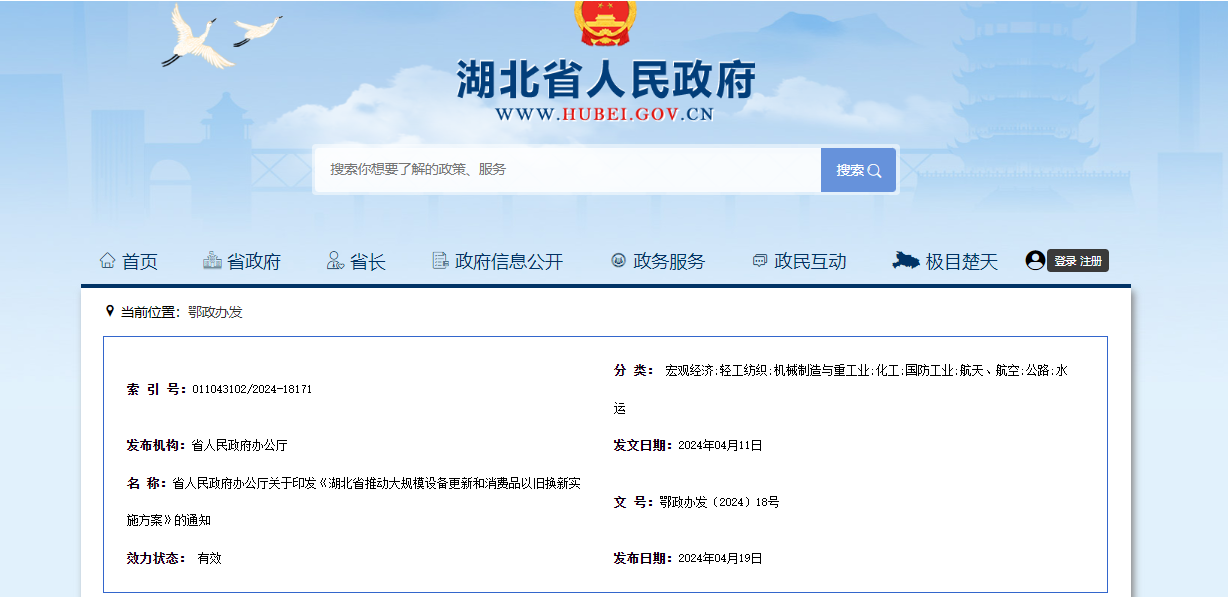 《湖北省推動大規(guī)模設(shè)備更新和消費(fèi)品