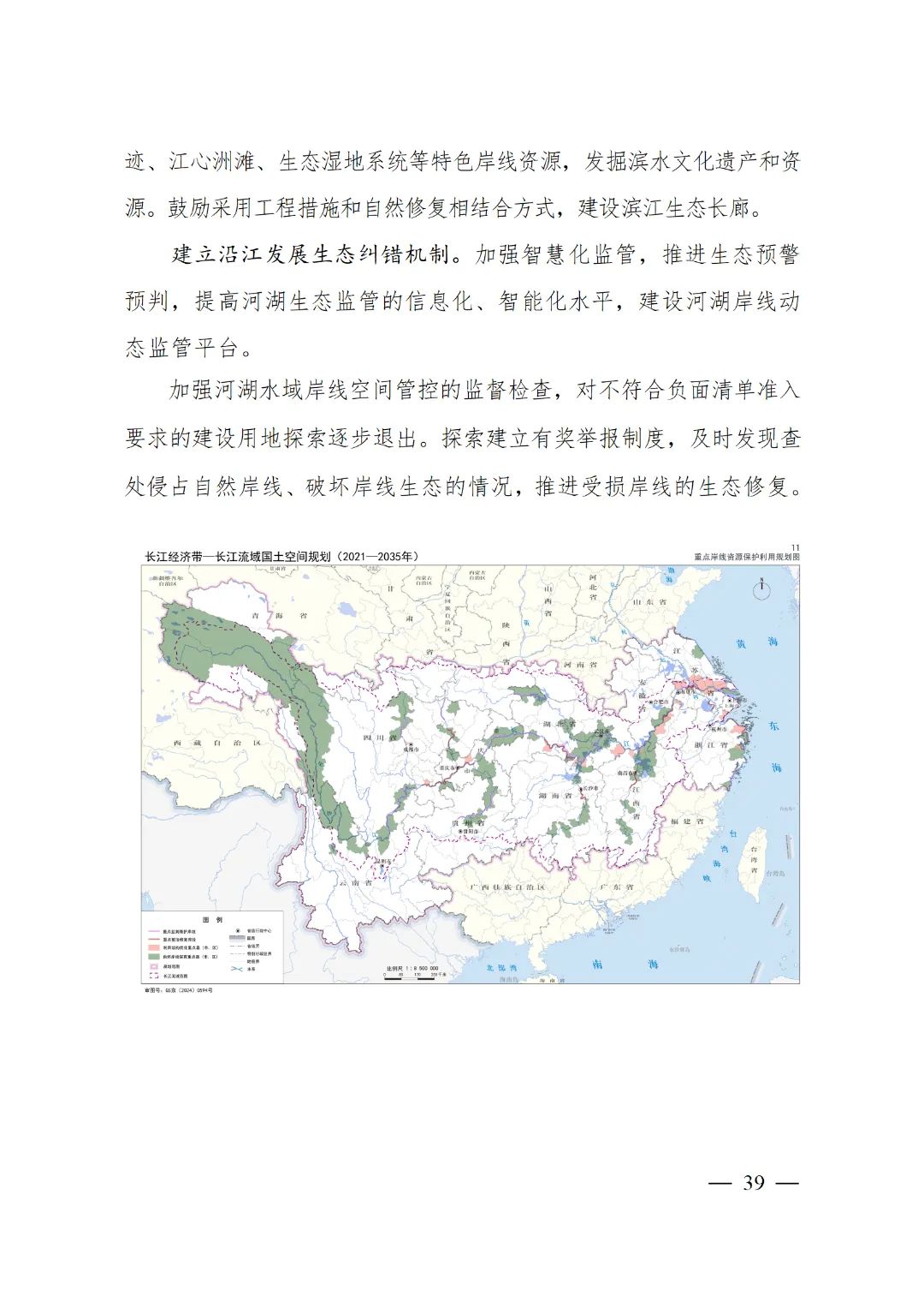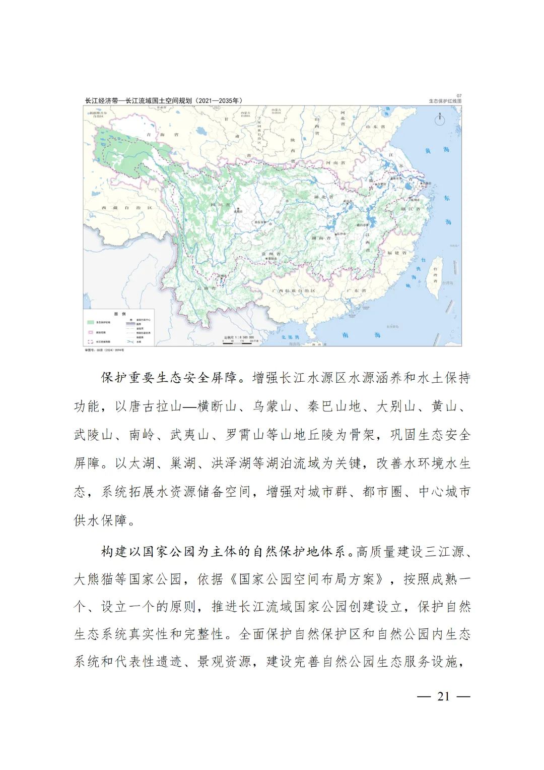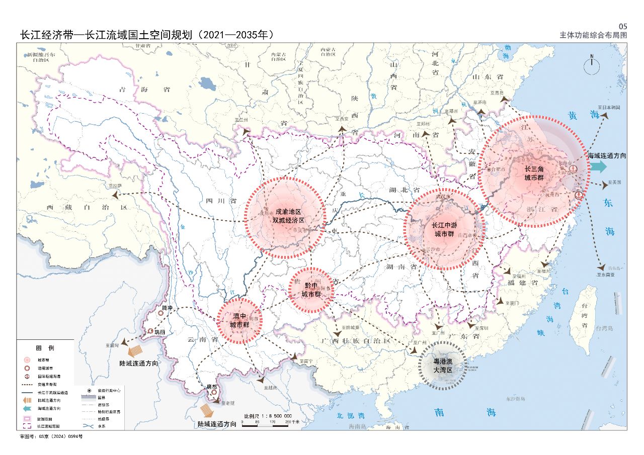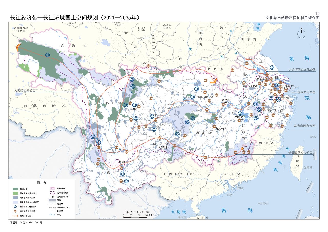2024年2月9日,《長江經(jīng)濟(jì)帶—長江流域國土空間規(guī)劃(2021—2035年)》經(jīng)國務(wù)院批復(fù)同意。9月10日,自然資源部正式印發(fā)《長江經(jīng)濟(jì)帶—長江流域國土空間規(guī)劃(2021—2035年)》。規(guī)劃范圍包括長江經(jīng)濟(jì)帶11個(gè)?。ㄊ校┤?/strong>,以及《長江保護(hù)法》規(guī)定的長江流域其他8?。▍^(qū)、市)的相關(guān)縣級(jí)行政區(qū)域,共計(jì)1173個(gè)縣級(jí)行政區(qū)域。規(guī)劃范圍包括陸域國土和內(nèi)水、領(lǐng)海。其中,陸域面積240萬平方公里。(后附規(guī)劃范圍詳細(xì)表格)規(guī)劃期限為2021年至2035年。