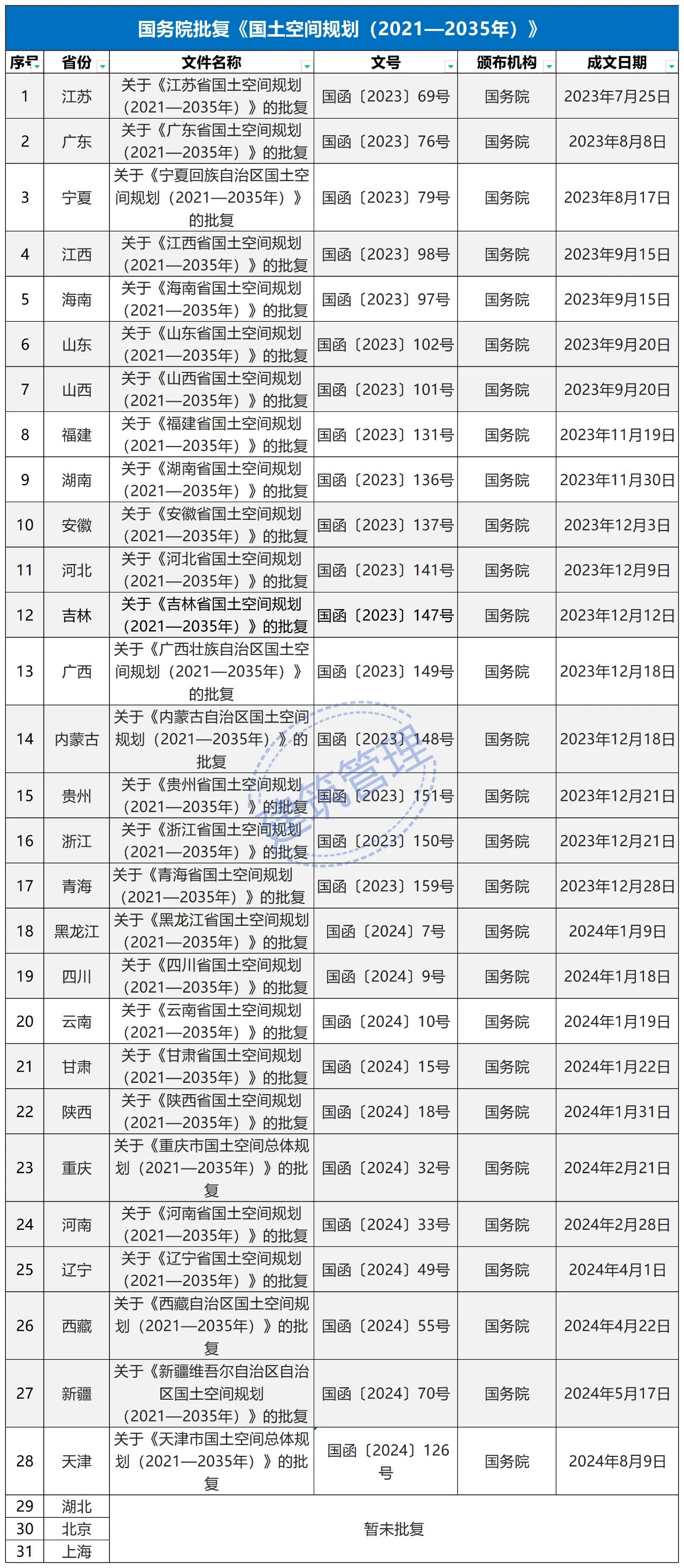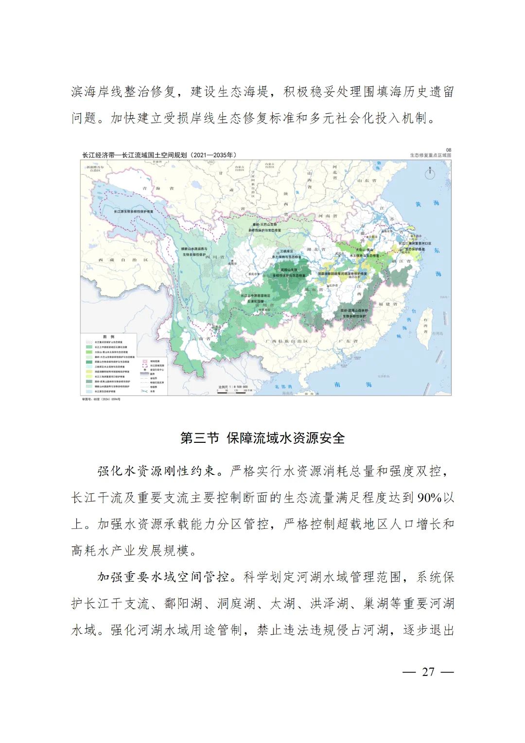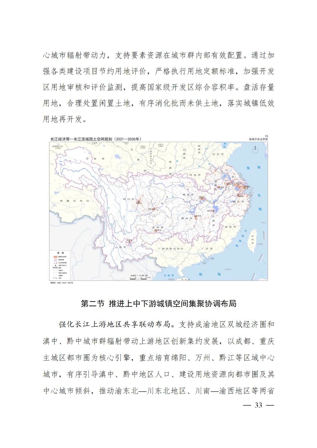 2024年2月9日,《長江經(jīng)濟(jì)帶—長江流域國土空間規(guī)劃(2021—2035年)》經(jīng)國務(wù)院批復(fù)同意。9月10日,自然資源部正式印發(fā)《長江經(jīng)濟(jì)帶—長江流域國土空間規(guī)劃(2021—2035年)》。規(guī)劃范圍包括長江經(jīng)濟(jì)帶11個(gè)?。ㄊ校┤?/strong>,以及《長江保護(hù)法》規(guī)定的長江流域其他8?。▍^(qū)、市)的相關(guān)縣級(jí)行政區(qū)域,共計(jì)1173個(gè)縣級(jí)行政區(qū)域。規(guī)劃范圍包括陸域國土和內(nèi)水、領(lǐng)海。其中,陸域面積240萬平方公里。(后附規(guī)劃范圍詳細(xì)表格)規(guī)劃期限為2021年至2035年。