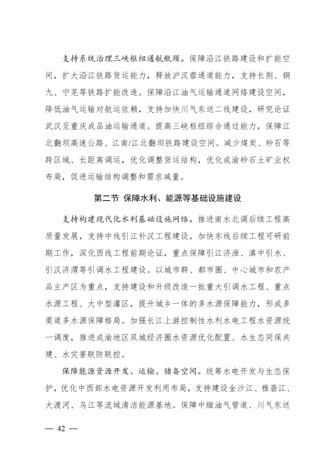 保障中緬油氣管道、川氣東送二線油氣管道、哈密至重慶特高壓通道、金沙江上游外送特高壓輸電通道、川渝特高壓交流工程、白鶴灘至華東特高壓輸電通道等能源輸送通道空間,強(qiáng)化對(duì)城市群、都市圈能源供給。