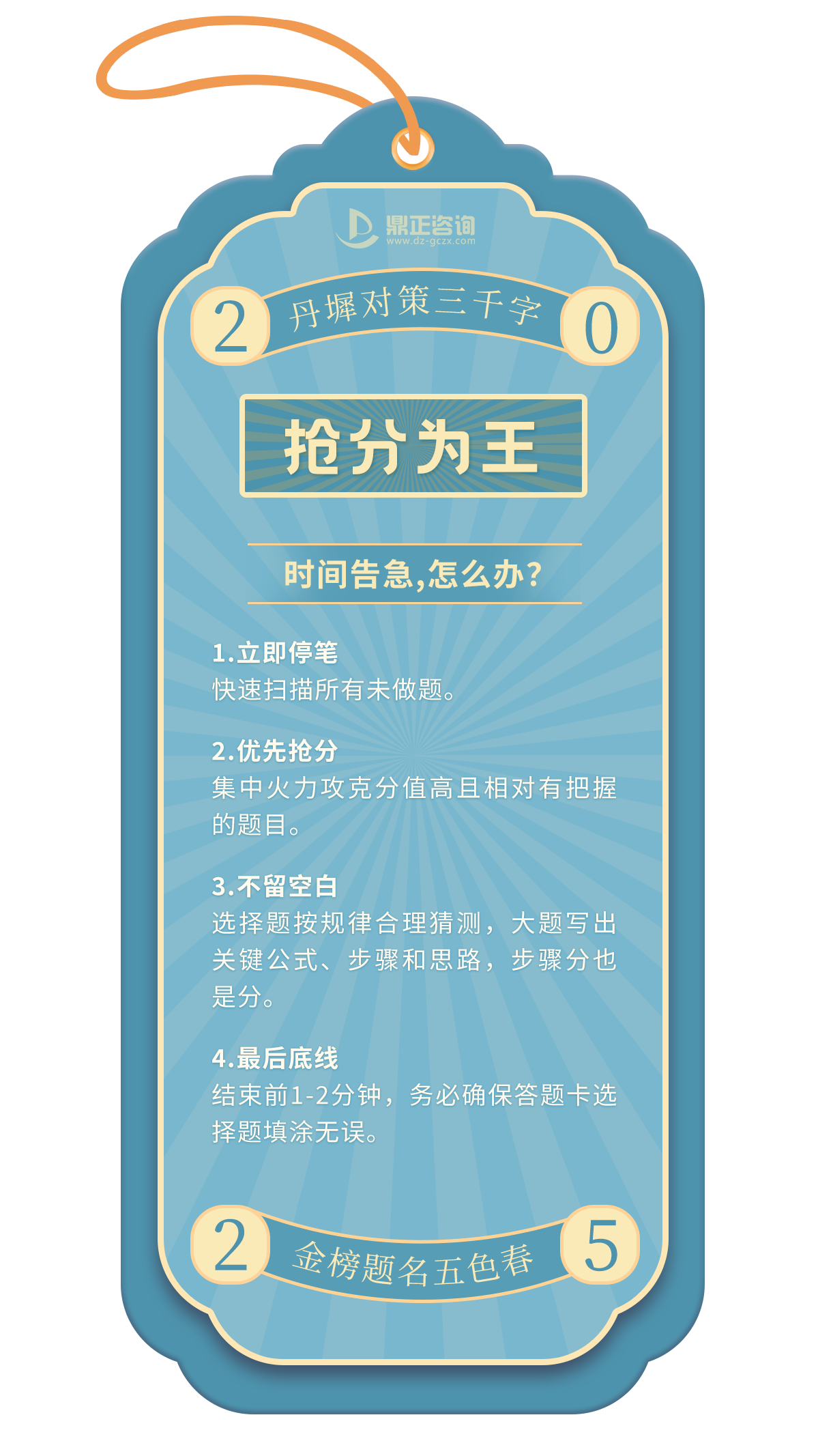 一年一度的高考即將拉開(kāi)帷幕,全國(guó)1335萬(wàn)學(xué)子,即將統(tǒng)一奔赴人生的重要考場(chǎng),十年寒窗磨一劍,只為能夠在這一次迎接光明的未來(lái)!決戰(zhàn)時(shí)刻,除了扎實(shí)的知識(shí),從容應(yīng)對(duì)考場(chǎng)內(nèi)外的“小意外”同樣關(guān)鍵。今天,鼎正人特別為莘莘學(xué)子準(zhǔn)備了這份「高考應(yīng)急錦囊」,匯集常見(jiàn)突發(fā)狀況的實(shí)用應(yīng)對(duì)策略,助大家穩(wěn)住心態(tài),全力發(fā)揮,讓每一滴汗水都不負(fù)期待!