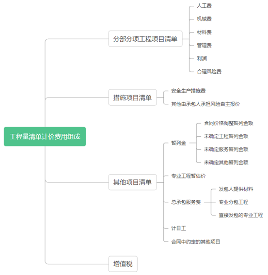 (1)新標(biāo)準(zhǔn)規(guī)費不再單獨計取,僅包括分部分項工程項目清單、措施項目清單、其他項目清單、增值稅四部分。