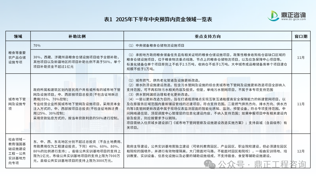 導(dǎo)讀:2025年下半年,中央預(yù)算內(nèi)資金與地方政府專項債券的申報通道進入最后沖刺階段。國家資金投放的“黃金窗口”正在收窄,為搶抓政策機遇,我們結(jié)合最新政策文件,對申報領(lǐng)域、支持方向及申報要點進行了全面梳理,助您搶占資金申報先機,精準(zhǔn)對接國家資金,推動項目落地開花!