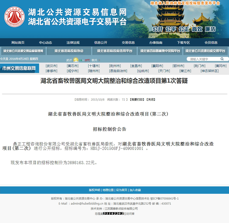 湖北省畜牧獸醫(yī)局文明大院整治和綜合改造項目第1次答疑