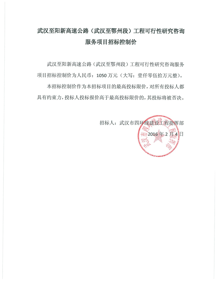 武漢至大悟高速公路工程可行性研究咨詢服務(wù)項目招標(biāo)控制價通知