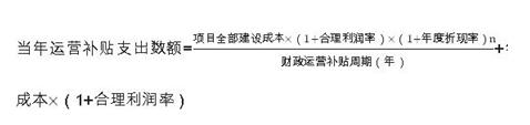 對政府付費模式的項目,在項目運營補貼期間,政府承擔全部直接付費責任。政府每年直接付費數(shù)額包括:社會資本方承擔的年均建設成本(折算成各年度現(xiàn)值)、年度運營成本和合理利潤。計算公式為: