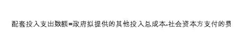 第二十二條 配套投入支出責任應綜合考慮政府將提供的其他配套投入總成本和社會資本方為此支付的費用。配套投入支出責任中的土地等實物投入或無形資產(chǎn)投入,應依法進行評估,合理確定價值。計算公式為: